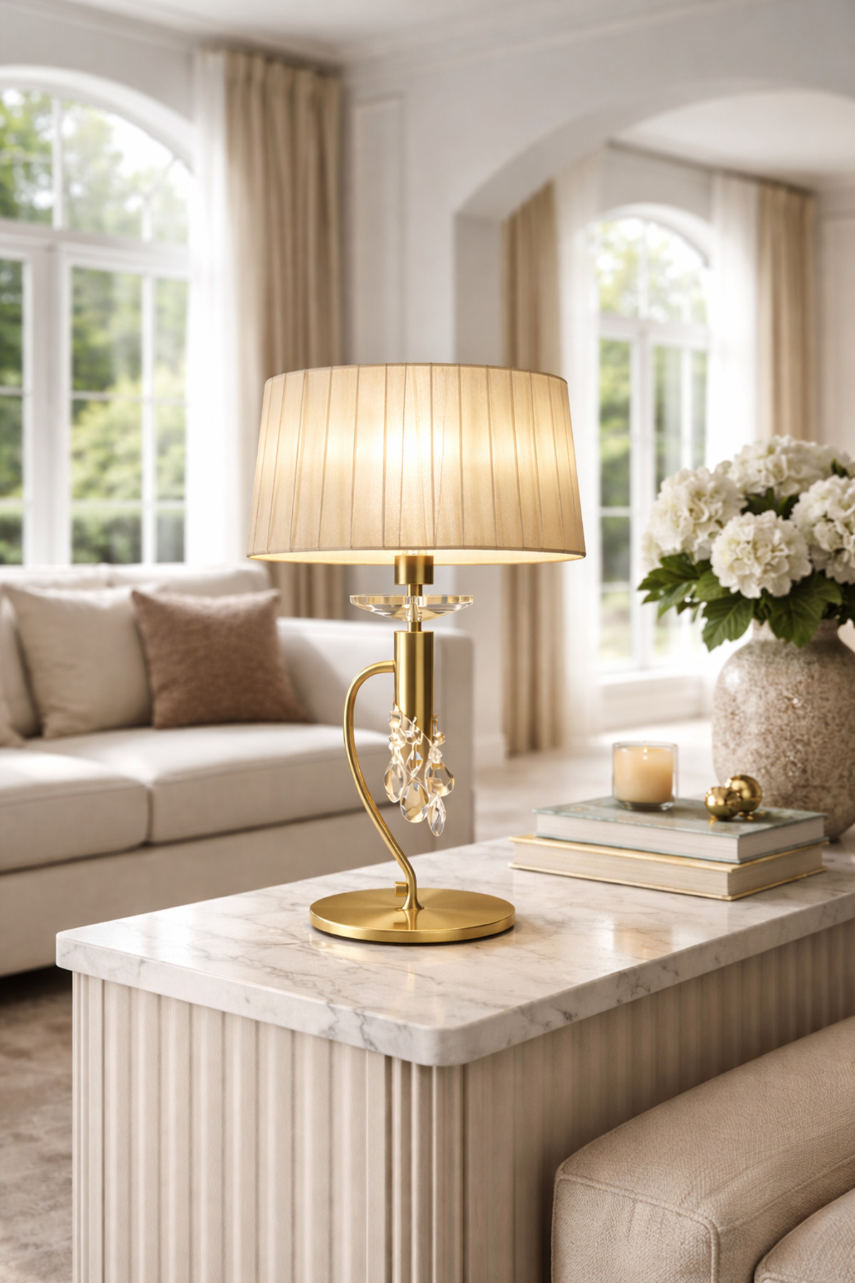 Zarafeti güçlü bir duruşla birleştiren Art Deco Gold Kristal Masa Lambası, yaşam alanlarına sofistike bir atmosfer kazandırmak için tasarlandı; Altın tonlu metal gövdesi, ışığı kırarak parlayan kristal detayları ve geniş silindirik kumaş şapkasıyla hem dekoratif hem işlevsel bir aydınlatma sunar; Art Deco stilinin karakteristik çizgilerini modern yorumla buluşturan bu masa lambası; salon, yatak odası, antre ve ofis gibi alanlarda lüks ve dengeli bir ışık dağılımı sağlar; Abajur formundaki kumaş şapka, gözü yormayan yumuşak bir ambiyans yaratırken kristal detaylar mekâna prestijli bir dokunuş katar; Minimal ama iddialı tasarımı sayesinde klasik ve modern dekorasyonlarla uyum sağlar; Tek başına kullanıldığında odak noktası olur, çift olarak kullanıldığında ise mekâna simetri ve bütünlük kazandırır; ÖNE ÇIKAN AVANTAJLAR Art Deco tarzı lüks ve zamansız tasarım; Gold renk kaplamalı sağlam metal gövde; Işığı estetik biçimde yansıtan kristal detaylar; Geniş kumaş şapka ile yumuşak ve dengeli aydınlatma; Salon, yatak odası, ofis ve otel konseptlerine uygun; Dekoratif olduğu kadar fonksiyonel kullanım; TEKNİK ÖZELLİKLER Ürün Tipi: Masa Lambası / Abajur; Stil: Art Deco; Gövde Malzemesi: Metal (gold renk kaplama); Detay Malzemesi: Kristal / cam; Şapka Malzemesi: Kumaş; Renk: Gold – Bej şapka; Ampul Duy Tipi: E27; Ampul Sayısı: 1 adet; Ampul Dahil: Hayır; Kullanım Alanı: Salon, yatak odası, antre, ofis; Menşei: Türkiye;