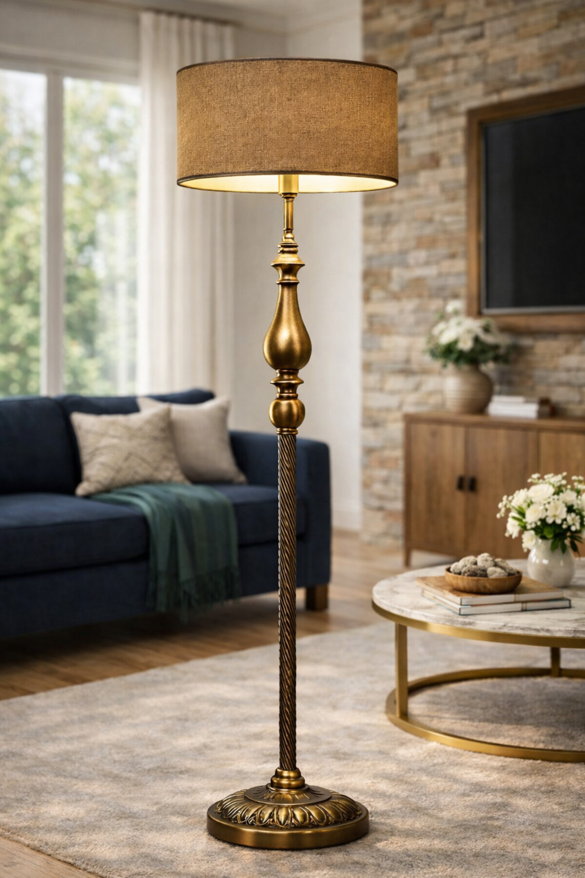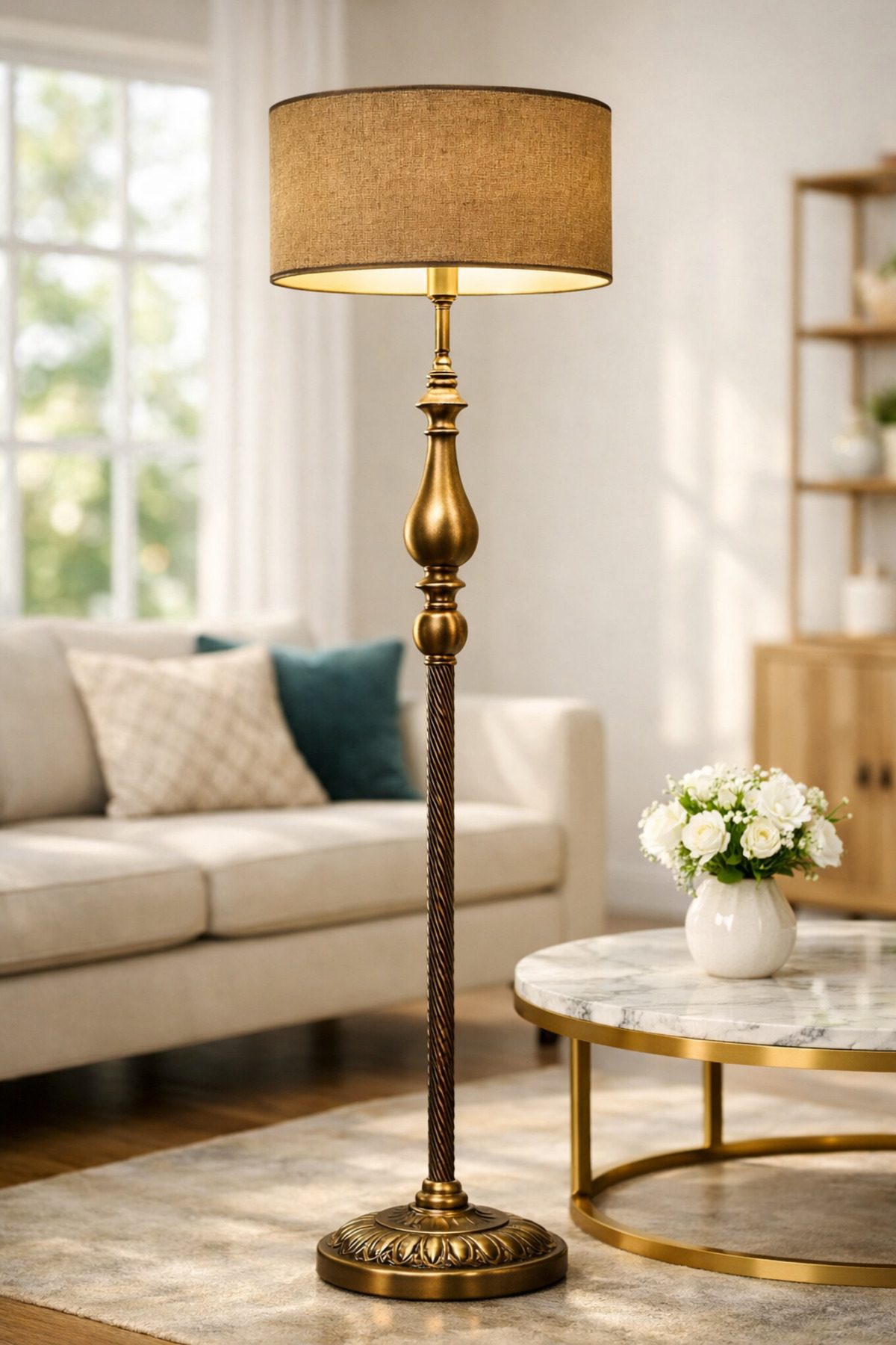 Vinner Atelier Bronze Gövdeli Klasik Lambader; yaşam alanlarında sıcak ve dengeli bir ambiyans oluşturmak için tasarlanmıştır; zarif formu, bronz tonlu metal gövdesi ve doğal dokulu kumaş şapkası ile klasik ve modern dekorasyonlara uyum sağlar; Dekoratif detaylara sahip metal gövde yapısı mekâna güçlü bir karakter kazandırırken; çuval dokulu bej kumaş şapka ışığı yumuşatarak göz yormayan konforlu bir aydınlatma sağlar; Salon, oturma odası ve okuma köşelerinde hem dekoratif hem fonksiyonel bir aydınlatma çözümü sunar; dengeli taban yapısı sayesinde güvenli ve stabil kullanım sağlar; El işçiliği detaylarıyla üretilen bu model; dekorasyonuna karakter katmak isteyen kullanıcılar için tasarlanmış özel bir lambaderdir; Ürün Özellikleri; • Ürün tipi: Lambader; • Gövde malzemesi: Metal; • Gövde rengi: Bronze; • Şapka: Çuval dokulu kumaş şapka; • Şapka rengi: Bej; • Yükseklik: 160 cm; • Şapka çapı: 40 cm; • Şapka yüksekliği: 20 cm; • Taban çapı: 30 cm; • Duy tipi: E27; • Kullanım alanı: Salon, oturma odası, çalışma odası, yatak odası;