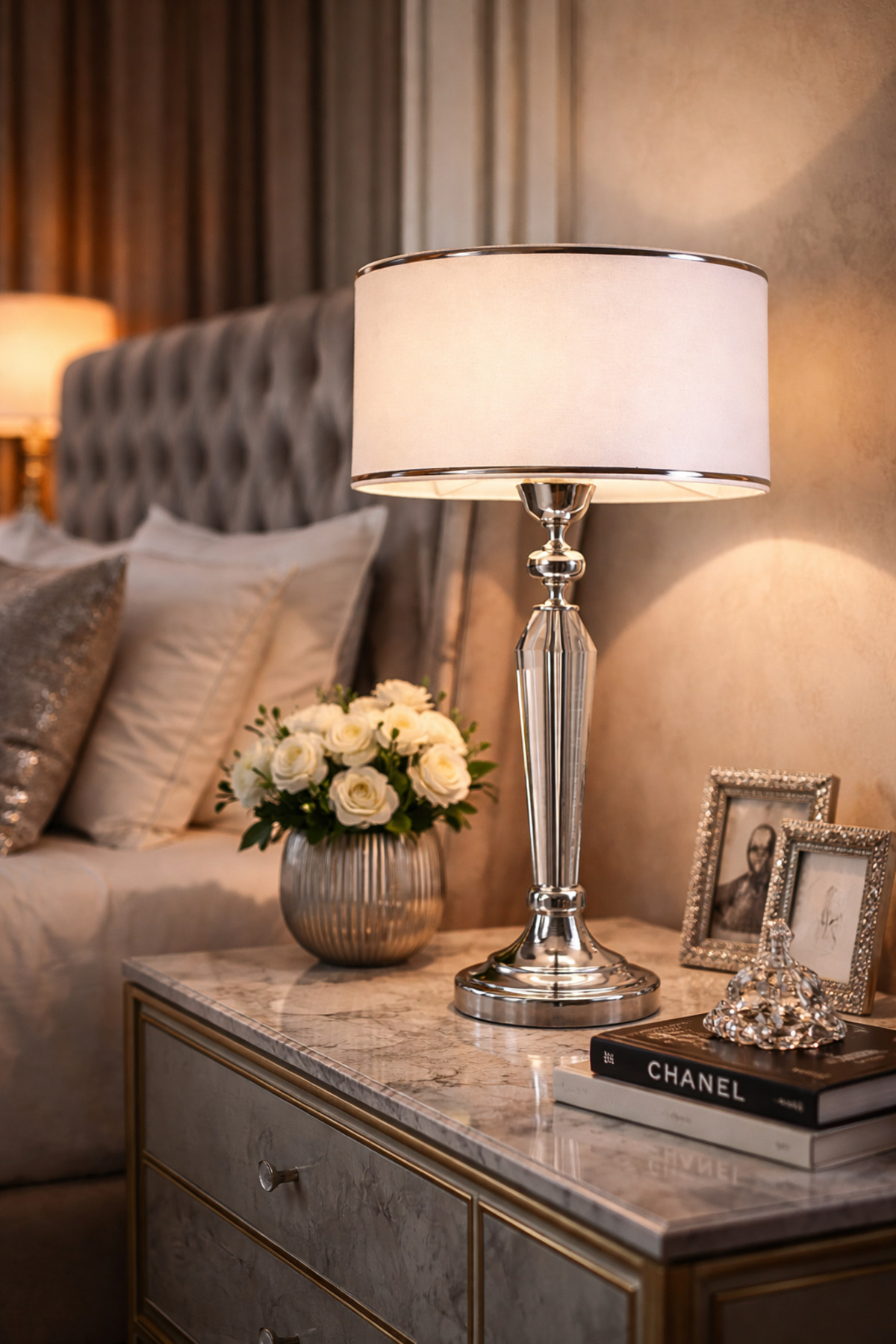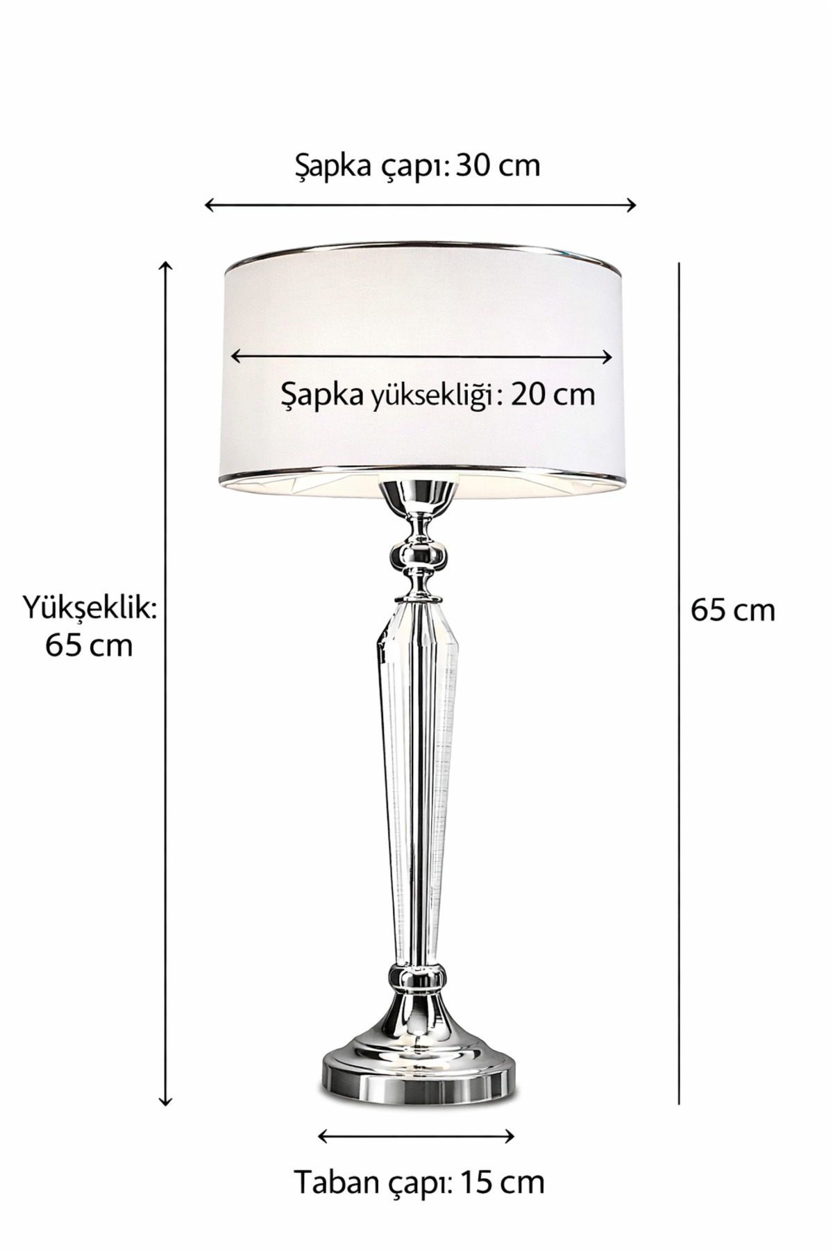 Zarif formu ve parlak krom detaylarıyla tasarlanan Vinner Atelier Crystal Abajur, yaşam alanlarına sofistike ve dengeli bir aydınlatma atmosferi kazandırır; kristal form gövde tasarımı ışıkla birleşerek dekoratif bir şıklık oluşturur; 30 cm çapındaki geniş kumaş şapka ışığı yumuşatarak ortama sıcak ve dengeli bir ambiyans sağlar; salon, yatak odası, konsol üstü ve komodin kullanımı için ideal ölçülerde tasarlanmıştır; Parlak krom kaplama gövde ve güçlü taban yapısı sayesinde hem estetik hem de stabil bir kullanım sunar; modern ve klasik dekorasyon stilleri ile uyum sağlayan zamansız bir tasarım sunar; Minimal ama dikkat çekici tasarım dili sayesinde bulunduğu ortamda dekoratif bir odak noktası oluşturur; Teknik Özellikler Toplam Yükseklik: 65 cm; Şapka Çapı: 30 cm; Şapka Yüksekliği: 20 cm; Taban Çapı: 15 cm; Gövde Malzemesi: Metal / Kristal Form Tasarım; Şapka Malzemesi: Kumaş; Renk: Krom / Beyaz Şapka; Duy Tipi: E27; Ampul Sayısı: 1 Adet; Ampul: Ürüne dahil değildir; Kullanım Alanları Salon; Yatak Odası; Komodin Üstü; Konsol Üstü; Ofis; Otel Odası Dekorasyonu;