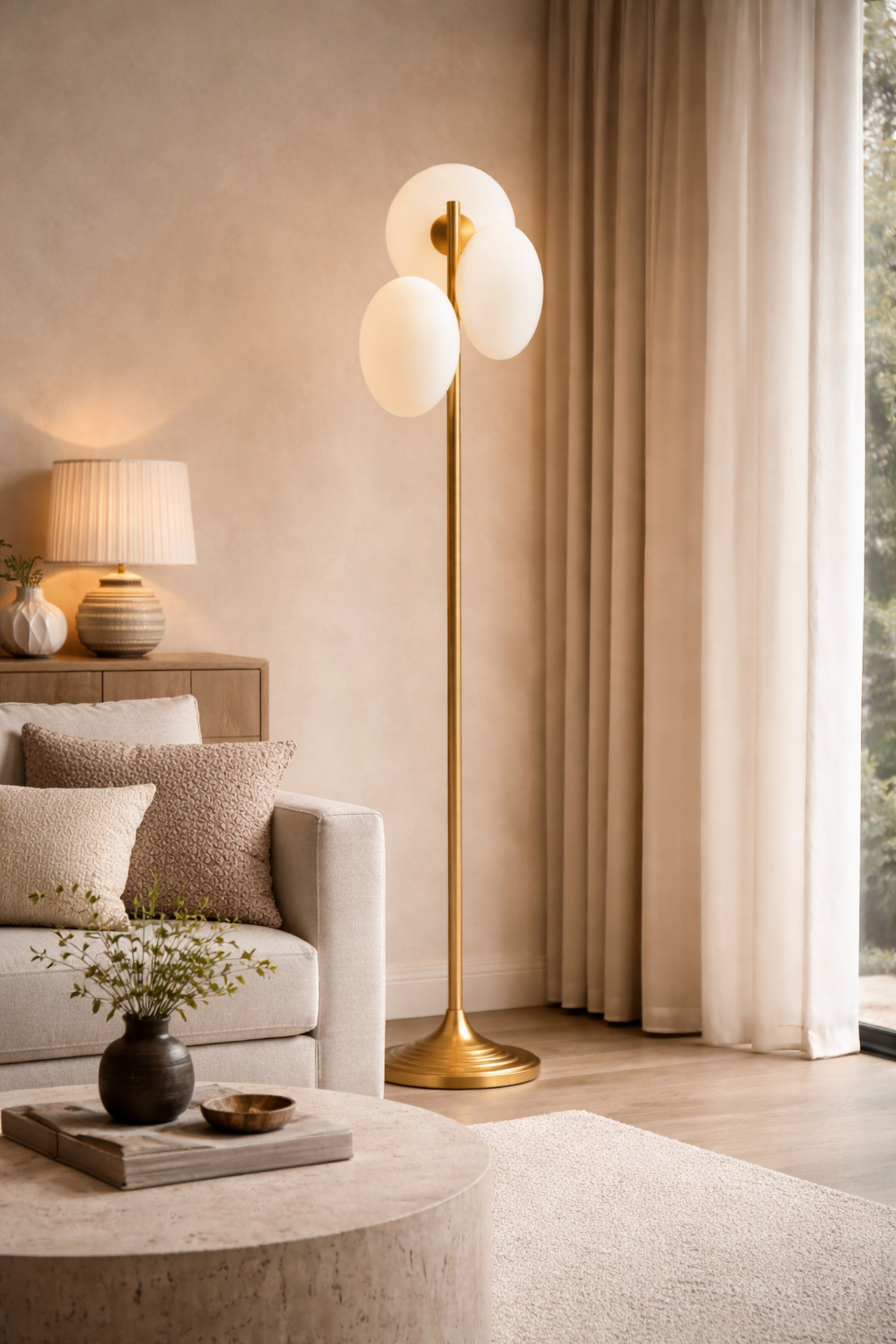 Vinner Atelier Liora Modern Lambader; yaşam alanlarında sıcak ve dengeli bir ambiyans oluşturmak için tasarlanmıştır; bronz tonlu metal gövdesi ve opal cam başlıkları sayesinde modern ve zarif bir dekoratif aydınlatma sunar; Üç farklı yöne konumlandırılmış opal cam başlıklar ışığın mekâna yumuşak ve homojen şekilde yayılmasını sağlayarak göz yormayan konforlu bir aydınlatma oluşturur; bu sayede hem dekoratif hem de fonksiyonel bir ambiyans ışığı sağlar; Bronz metal gövde tasarımı ürüne sofistike ve zamansız bir karakter kazandırırken; ince ve dengeli formu modern salon, yatak odası ve dinlenme alanlarında güçlü bir dekoratif etki oluşturur; Minimal çizgileri sayesinde modern mimari projeler, lüks konutlar ve çağdaş iç mekân tasarımlarıyla kusursuz uyum sağlayan şık bir aydınlatma çözümüdür; Teknik Özellikler • Ürün Tipi: Dekoratif Lambader; • Ürün Kodu: VA-LR3-BR160; • Malzeme: Metal Gövde + Opal Cam; • Renk: Bronz; • Başlık Sayısı: 3; • Işık Tipi: LED Ampul Uyumlu; • Kullanım Alanı: Salon, yatak odası, antre, oturma odası, villa, otel;