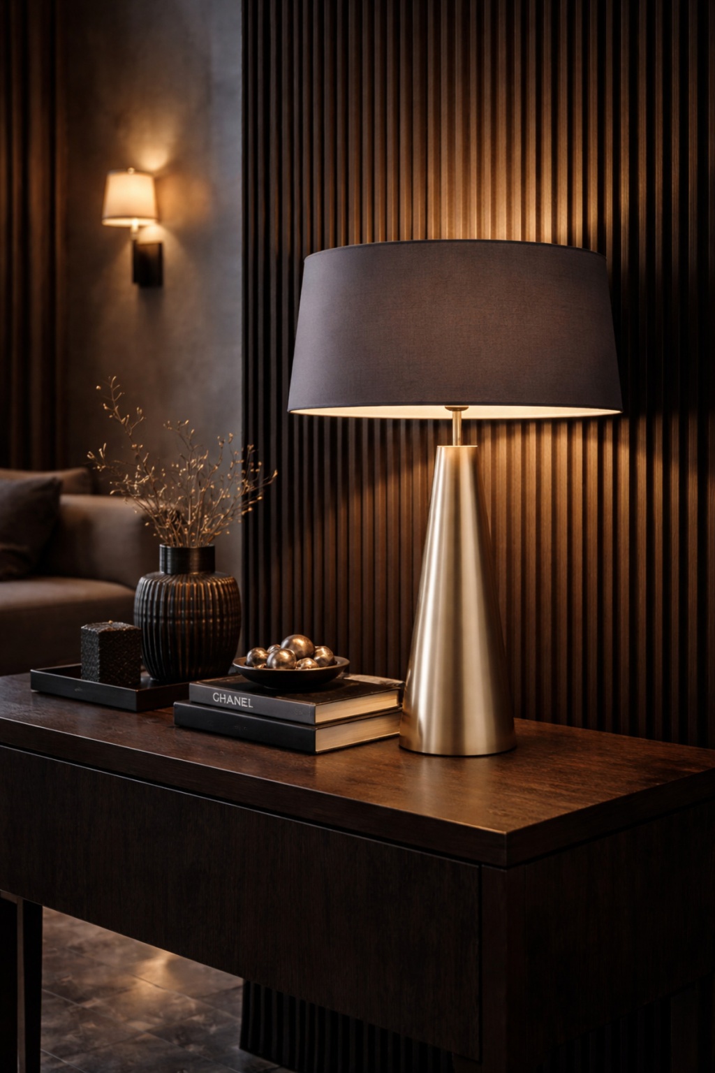 Güçlü Form.; Zamansız Işık; Vinner Belfort, şampanya bronz metal gövdesi ve dokulu keten şapkasıyla modern yaşam alanlarında sofistike bir odak noktası oluşturur; 60 cm yüksekliği sayesinde konsol, yan sehpa ve komodin üzerinde dengeli ve güçlü bir siluet sunar; Konik gövde formu mekâna modern bir karakter kazandırırken, keten şapka ışığı yumuşatarak sıcak ve dengeli bir ambiyans üretir; Bu bir tamamlayıcı değil, bir imza parçasıdır; Segment Bilgisi; ✔ Salon & antre için statement parça; ✔ Otel konsepti ve modern daireler için ideal; ✔ Minimal ama güçlü tasarım dili; ✔ Premium iç mekân kombinlerine uyumlu; Teknik Detaylar; Toplam Yükseklik: 60 cm; Şapka Çapı: 30 cm; Gövde: Şampanya bronz metal; Şapka: Keten kumaş; Duy Tipi: E27;