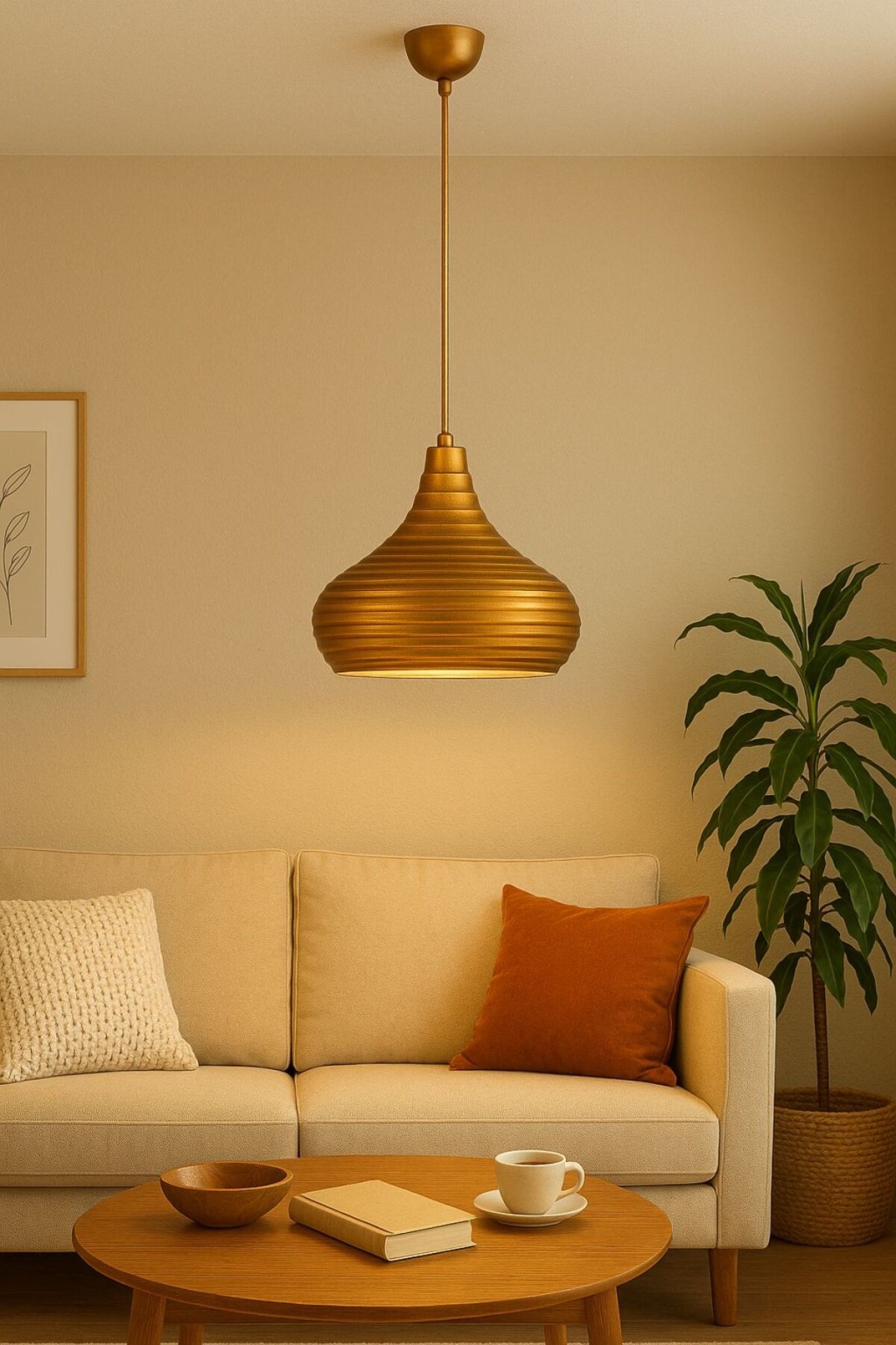 Golden Pear Line Sarkıt Avize, armut formundaki çizgili tasarımı ve altın rengiyle yaşam alanlarınıza şıklık katıyor; Modern dekorasyon tarzlarına uyum sağlayan bu avize, hem estetik görünümü hem de fonksiyonelliğiyle öne çıkıyor; Ürün Özellikleri ve Ölçüler: • Yükseklik: 35 cm (askı kablosu ile ayarlanabilir, max 100 cm); • Genişlik / Çap: 20 cm; • Malzeme: Dayanıklı metal gövde, elektrostatik fırın boya; • Renk: Parlak altın; • Form: Çizgili armut formu (ribbed pear design); • Duy Tipi: E27 (LED, tasarruflu veya klasik ampul uyumlu); • Kablo Uzunluğu: Ayarlanabilir (minimum 30 cm – maksimum 100 cm); • Kullanım Alanları: Salon, mutfak, yemek masası üstü, koridor, kafe, ofis; ✔ Modern & dekoratif çizgili tasarım; ✔ Altın renk kaplama ile lüks görünüm; ✔ Dayanıklı metal gövde; ✔ Kolay montaj – uzun ömürlü kullanım; ✔ Salon, mutfak, hol ve kafe için ideal aydınlatma; Golden Pear Line, dekoratif aydınlatmada şıklığı ve kaliteyi bir araya getirir; Hem tekli kullanımda hem de çoklu kombinlerde mekanınıza benzersiz bir atmosfer katar;