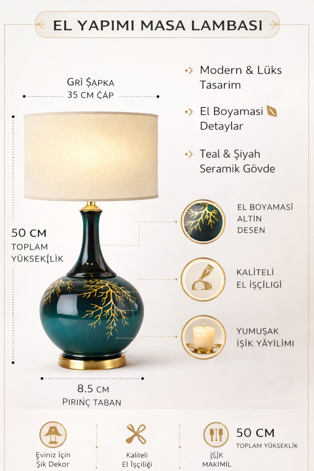 İznik Aura IA-01 El Yapımı Seramik Abajur – Premium Dekoratif Masa Lambası
