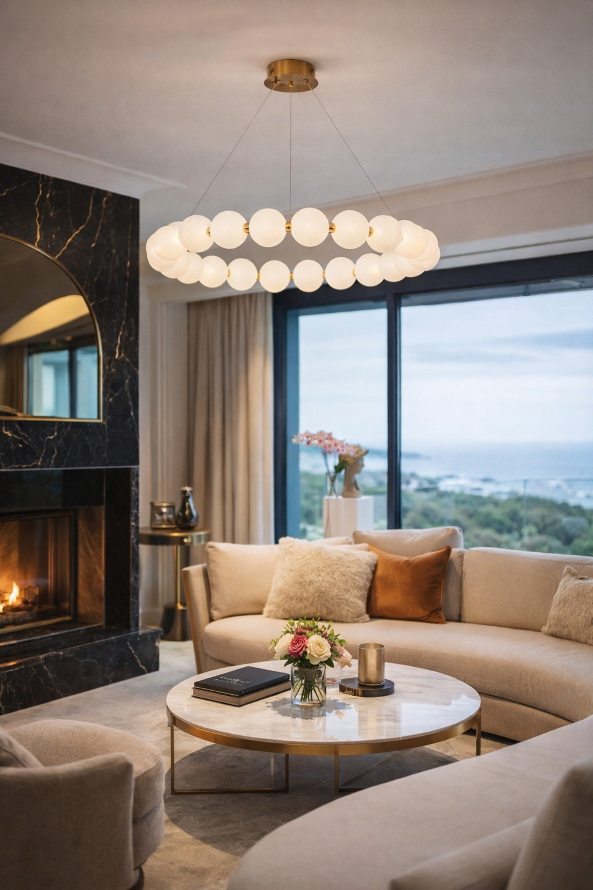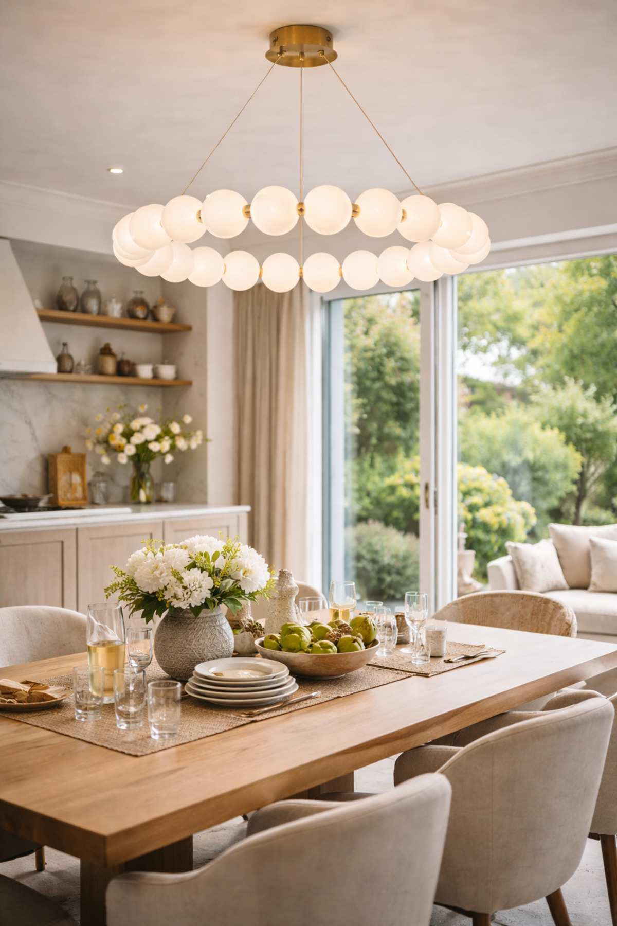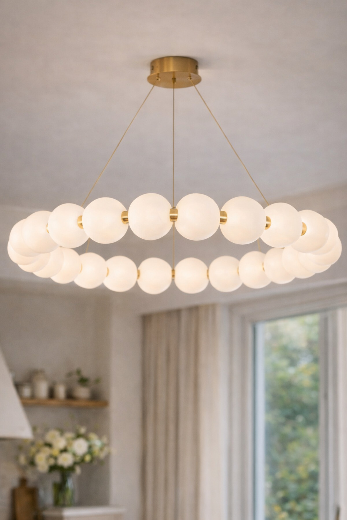 Modern mimari çizgilerden ilham alan Vinner Lumiera Halo avize, opal cam küreleri ve gold metal gövdesiyle yaşam alanlarında güçlü bir dekoratif etki oluşturur; Halka formunda dizilen cam küreler ışığı mekâna dengeli ve homojen şekilde yayarak salon, yemek odası ve geniş yaşam alanlarında ideal aydınlatma sağlar; Mat opal cam difüzörler ışığı yumuşatarak göz yormayan bir ambiyans oluşturur ve mekâna sıcak bir atmosfer kazandırır; Gold metal taşıyıcı gövde modern ve premium bir görünüm sunarak çağdaş dekorasyon tarzları ile uyum sağlar; 100 cm genişliği sayesinde özellikle büyük yemek masaları ve geniş salonlar için ideal ölçüde aydınlatma sunar ve mekânın merkezinde güçlü bir tasarım objesi oluşturur; Ayarlanabilir askı sistemi farklı tavan yüksekliklerine kolayca uyum sağlayarak kullanım esnekliği sunar; Minimal ve mimari tasarımı sayesinde modern, çağdaş ve lüks iç mekân dekorasyonlarında estetik bir aydınlatma çözümü sunar; Çap: 100 cm; Maksimum yükseklik: 120 cm (ayarlanabilir askı sistemi); Gövde: Gold metal; Cam: Opal cam küre; Duy tipi: E27 LED ampul uyumlu; Kullanım alanı: Salon, yemek odası, büyük masa üzeri aydınlatma, oturma alanı;
