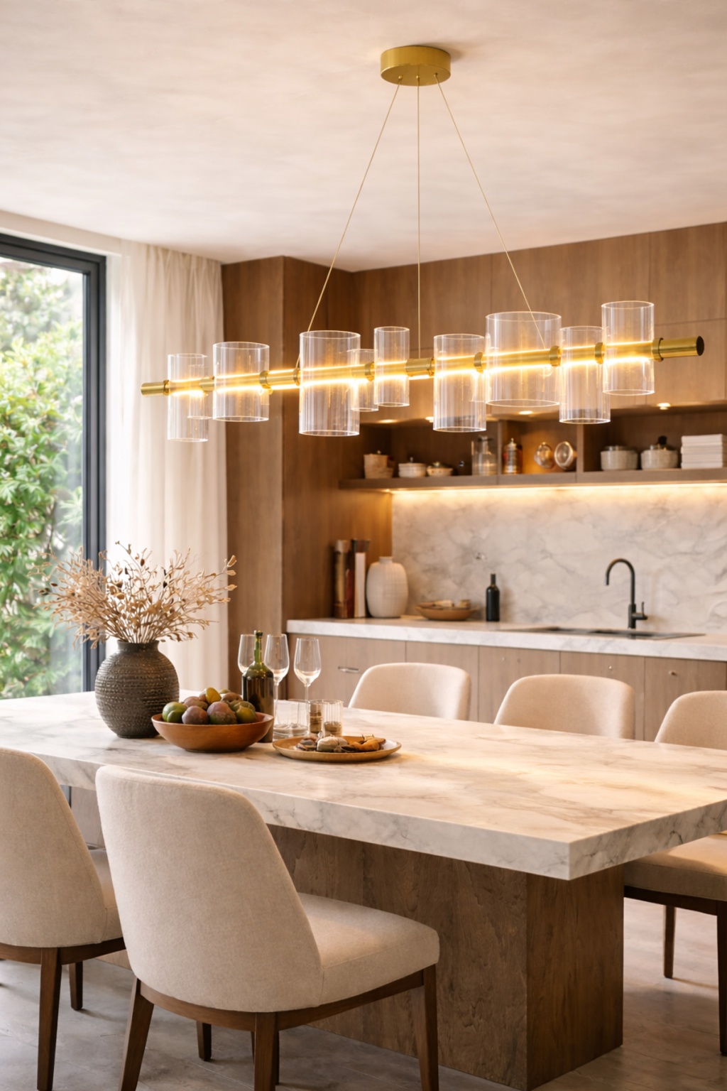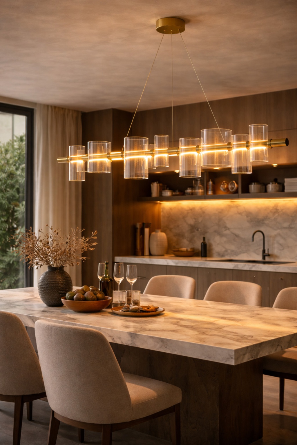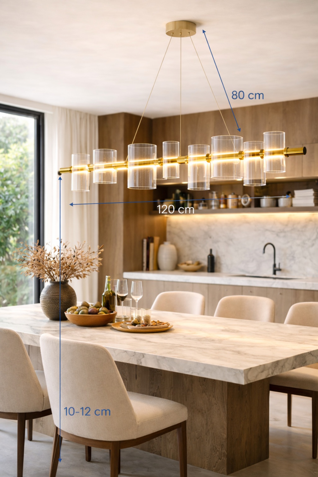 Modern mimari tasarımı ve şık cam silindir detaylarıyla öne çıkan VINNER Lineer Cam Silindir Avize, yemek masaları ve geniş yaşam alanları için tasarlanmış premium bir aydınlatma çözümüdür; 120 cm uzunluğundaki lineer formu sayesinde ışığı dengeli bir şekilde dağıtarak yemek alanlarında estetik ve güçlü bir ambiyans oluşturur; Bronz metal gövde ve şeffaf cam silindir başlıklar modern, minimalist ve contemporary dekorasyon tarzlarıyla mükemmel uyum sağlar; Yüksek kaliteli metal gövdesi ve dayanıklı cam başlıkları sayesinde uzun ömürlü kullanım sunar; Yemek masası, salon, villa ve proje dekorasyonları için ideal modern avize modelidir; Teknik Özellikler; Marka: VINNER; Ürün Tipi: Lineer Cam Silindir Avize; Uzunluk: 120 cm; Toplam Yükseklik: 90 cm; Malzeme: Metal Gövde + Cam; Renk: Bronz; Işık Renkleri: 3000K / 4500K / 6000K; Kullanım Alanı: Yemek Masası; Salon; Villa; Oturma Odası; Projeler; Montaj: Tavandan askı sistem;