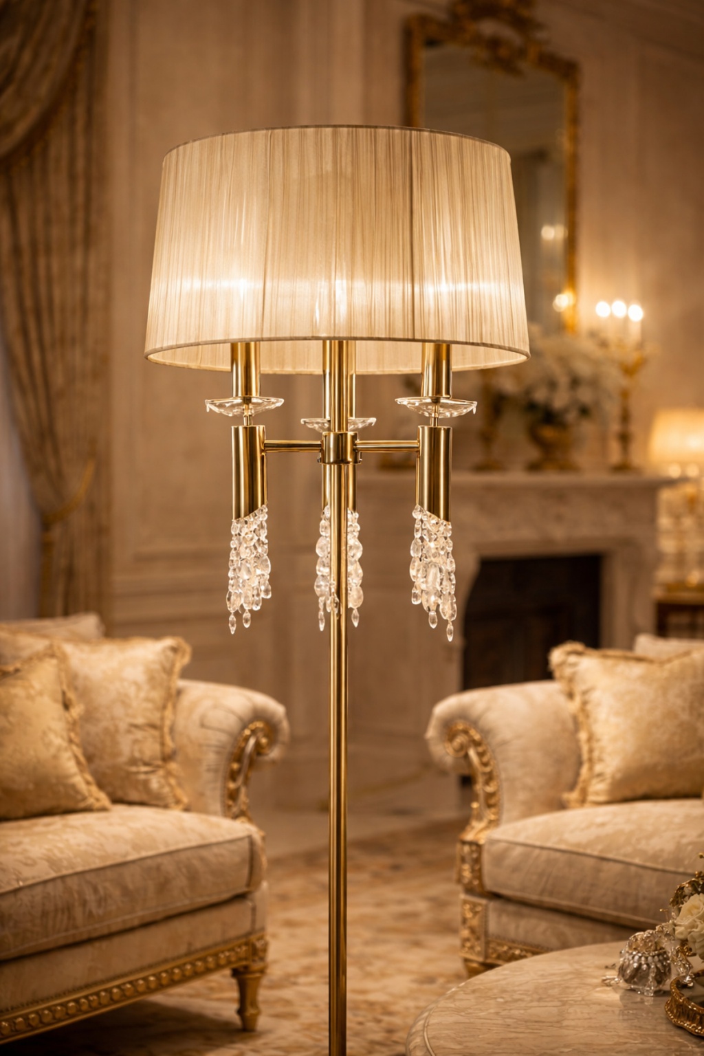 NOIRE Mat Gold Kristalli Art Deco Lambader Premium Salon Aydınlatması; Bazı ürünler ortamı aydınlatır; NOIRE, mekânın seviyesini belirler; Mat gold metal gövdesi, kristal detayları ve dengeli ışık dağılımıyla NOIRE; parlaklığa kaçmadan, sessiz ama net bir lüks sunar; Art Deco çizgileri sayesinde hem klasik hem modern salonlarla kusursuz uyum sağlar; Bu bir lambader değil, odak noktasıdır; Öne Çıkan Özellikler; Mat Gold Metal Gövde; Parlak altın görünümünden uzak, zamansız ve sofistike bir yüzey; Parmak izi tutmaz, uzun yıllar formunu korur; Kristal Detaylı Tasarım; Işığı kırarak ortamda derinlik ve hacim hissi oluşturur; Dekoratif olduğu kadar fonksiyoneldir; Premium Kumaş Şapka; Göz yormayan, yumuşak ve dengeli ışık dağılımı sağlar; Salon ve oturma alanları için ideal aydınlatma sunar; Art Deco Stil; Modern çizgilerle klasik detayların dengeli birleşimi; Lüks salon dekorasyonları için güçlü bir tamamlayıcıdır; Boydan ve Dengeli Yapı; Geniş alanlarda kaybolmaz, küçük alanlarda boğmaz; Mekânda “fazla” değil, doğru durur; Nerelerde Kullanılır; Salon; Oturma odası; Lüks yaşam alanları; Otel, villa ve prestijli iç mekân projeleri; Kimler İçin Uygun; Parlak ve gösterişli ürünlerden hoşlanmayan; Sessiz lüksü tercih eden; Dekorasyonda kaliteyi detayda arayan; Salonunu sıradan lambaderlerle doldurmak istemeyen kullanıcılar için; Teknik Bilgiler; Ürün Tipi: Lambader; Gövde Malzemesi: Metal; Gövde Rengi: Mat Gold; Detay: Kristal; Stil: Art Deco; Kullanım Alanı: İç Mekân; Ampul: Standart duy uyumlu (ampul dahil değildir); Neden NOIRE; Çünkü bu ürün; Trend değil, zamansızdır; Gösterişli değil, seviye sahibidir; Ucuz görünmez, pahalıya da bağırmaz; NOIRE alan müşteri aydınlatma değil; mekân kalitesi satın alır;