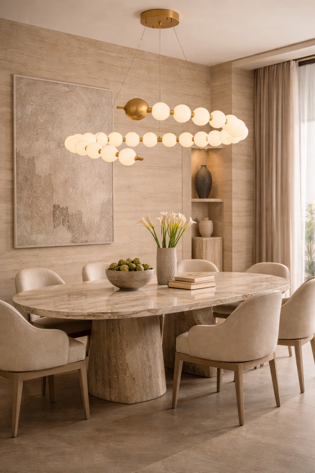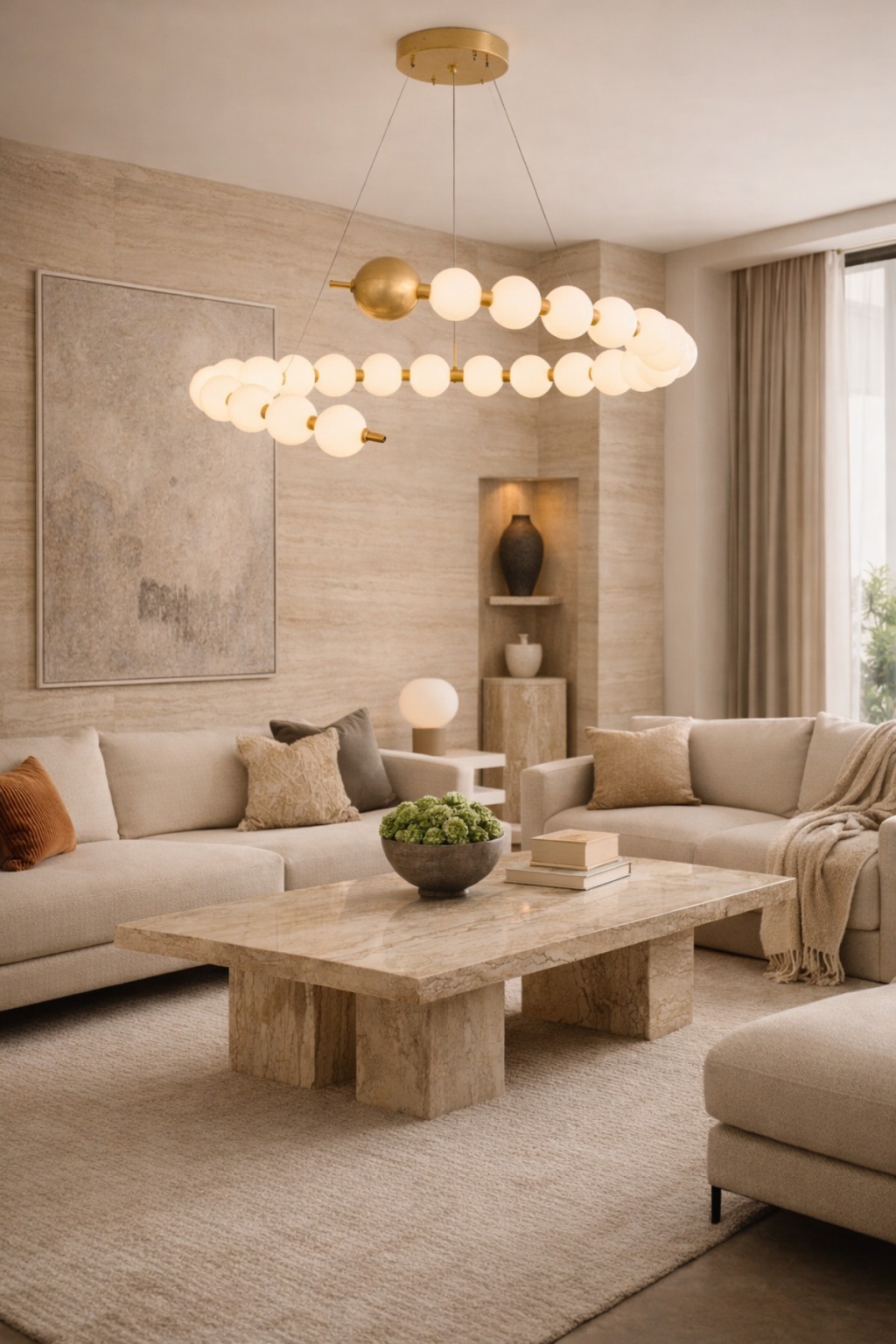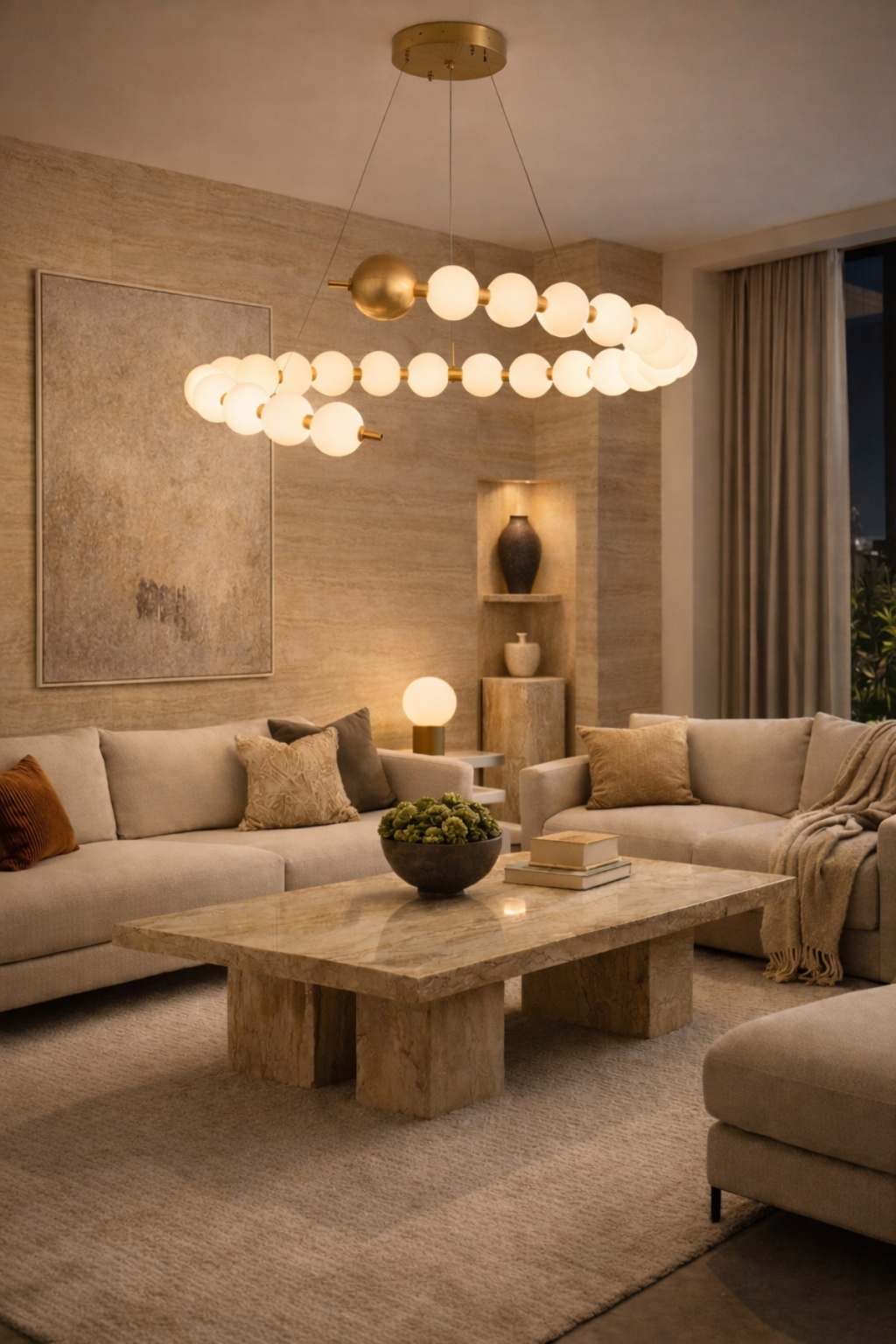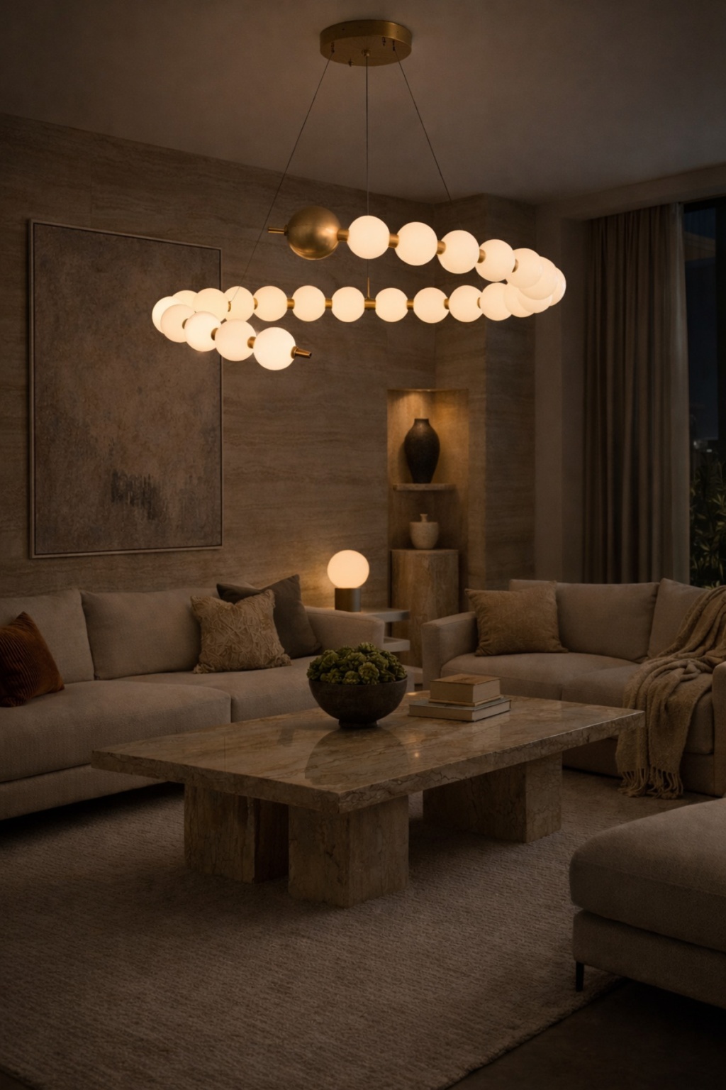 Modern mimari formlardan ilham alan Vinner S80 Nova Avize, opal cam küreleri ve pirinç tonlu metal gövdesiyle mekâna güçlü bir tasarım dili kazandırır; Geniş aydınlatma yüzeyi sayesinde salon, yemek odası ve büyük yaşam alanlarında dengeli ışık dağılımı sağlar; Minimal formu ve sıcak ışık etkisiyle dekorasyona premium bir atmosfer katar; Teknik Özellikler Marka: Vinner; Model: S80 Nova; Malzeme: Metal gövde + opal cam küre; Gövde Rengi: Pirinç ton kaplama; Işık Tipi: LED ampul uyumlu; Işık Rengi: 3000K / 4500K / 6000K uyumlu; Kullanım Alanı: Salon, yemek odası, oturma odası, kafe, restoran; Montaj: Tavana sabit askı sistemi; Stil: Modern / Contemporary;
