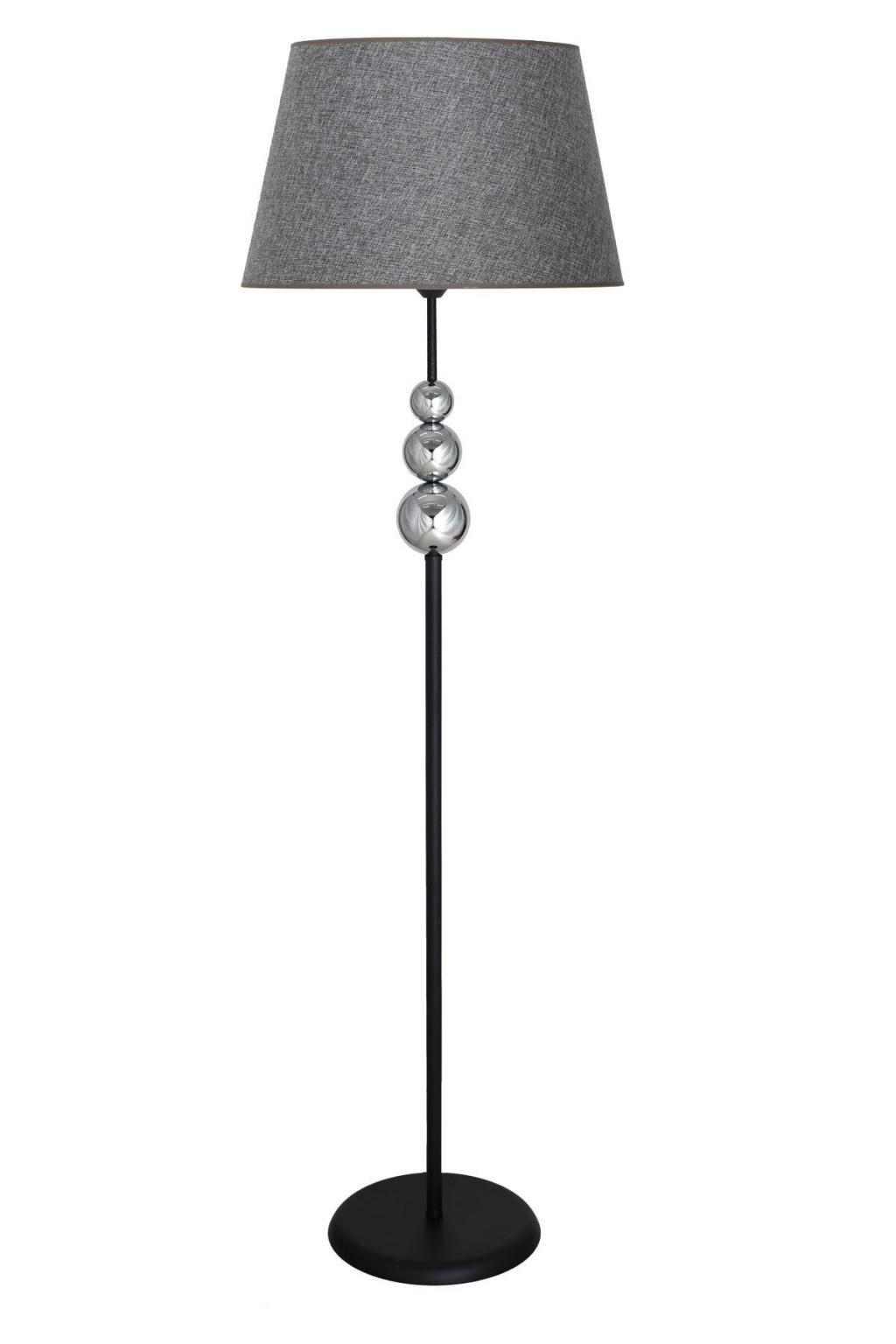 Üçlü Krom Küre Tek Ayaklı Siyah Metal Lambader - Hasır Gri