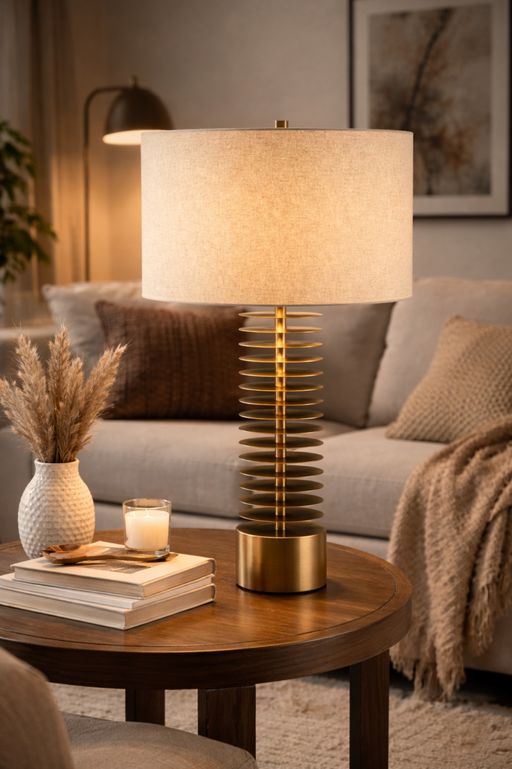 Modern tasarım dili ile güçlü bir dekoratif etki sunan Vinner Walwe Eskitme Gold Abajur, yaşam alanlarında sıcak ve sofistike bir atmosfer oluşturmak için tasarlanmıştır; Disk formunda katmanlı metal gövde tasarımı, ürüne mimari bir karakter kazandırırken mekânda dikkat çekici bir odak noktası oluşturur; Eskitme mat gold metal yüzeyi, modern ve klasik dekorasyonlarla uyum sağlayarak premium bir görünüm sunar; Krem tonlu kumaş şapka, ışığı yumuşatarak göz yormayan dengeli bir aydınlatma sağlar ve özellikle salon, yatak odası ve çalışma alanlarında ideal bir ambiyans oluşturur; Walwe serisinin karakteristik formu, dekoratif obje etkisi ile yalnızca bir aydınlatma ürünü değil aynı zamanda güçlü bir tasarım objesi olarak konumlanır; Üst segment iç mekân projeleri, mimari dekorasyonlar ve stil sahibi yaşam alanları için geliştirilmiştir; Teknik Özellikler Ürün Kodu: ABJ-FR02; Ürün Adı: Walwe Eskitme Gold Abajur; Gövde Malzemesi: Metal; Gövde Renk: Eskitme Mat Gold; Şapka Malzemesi: Kumaş; Şapka Renk: Krem / Bej; Duy Tipi: E27; Ampul: LED ampul ile uyumludur; Kullanım Alanı: Salon, Yatak Odası, Konsol Üzeri, Komodin, Ofis; Tasarım: Modern – Dekoratif – Premium Segment;